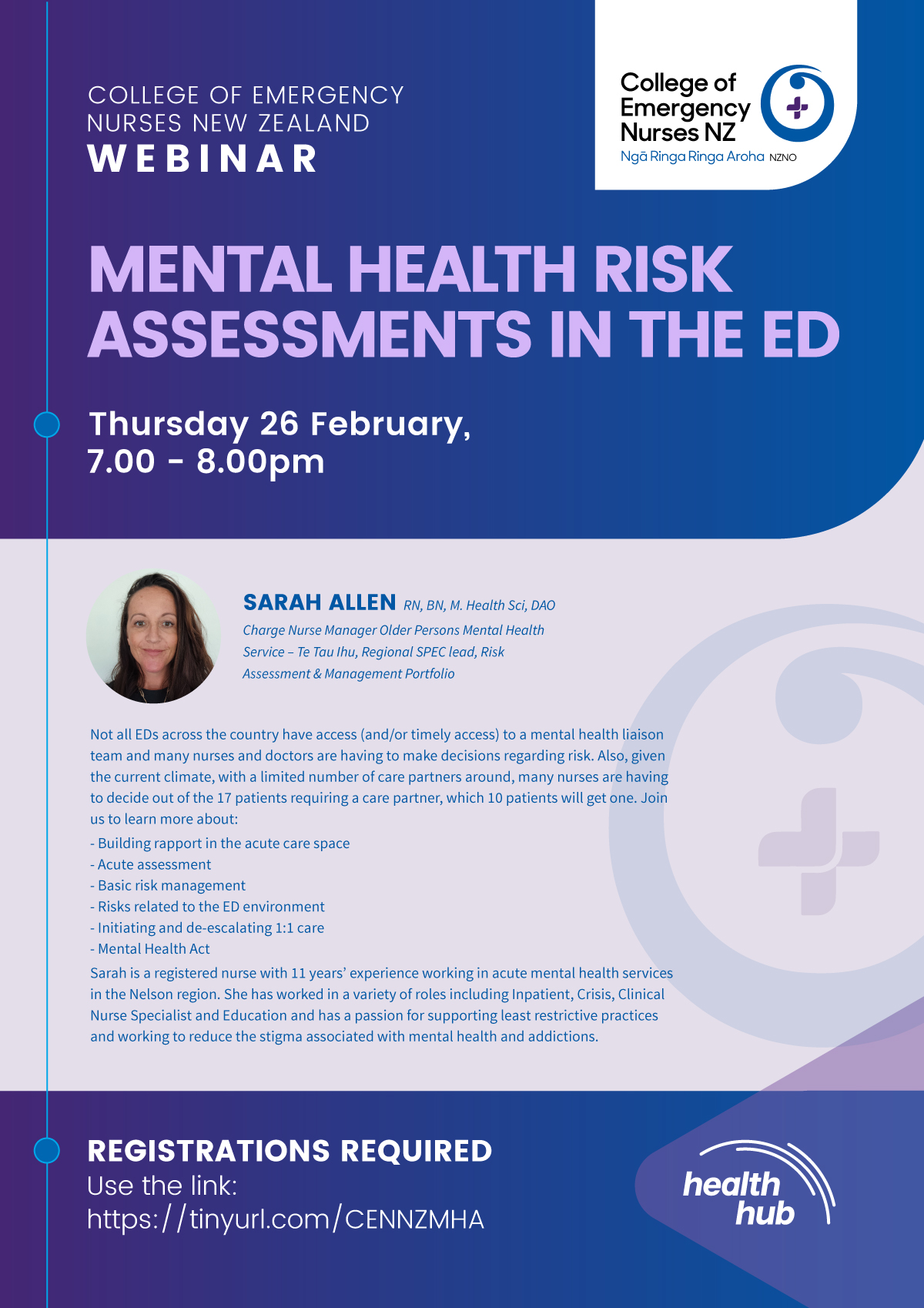 Welcome to the College of Emergency Nurses New Zealand – NZNO (CENNZ) webpage where we will be publicising upcoming webinars and uploading webinar recordings to watch later.