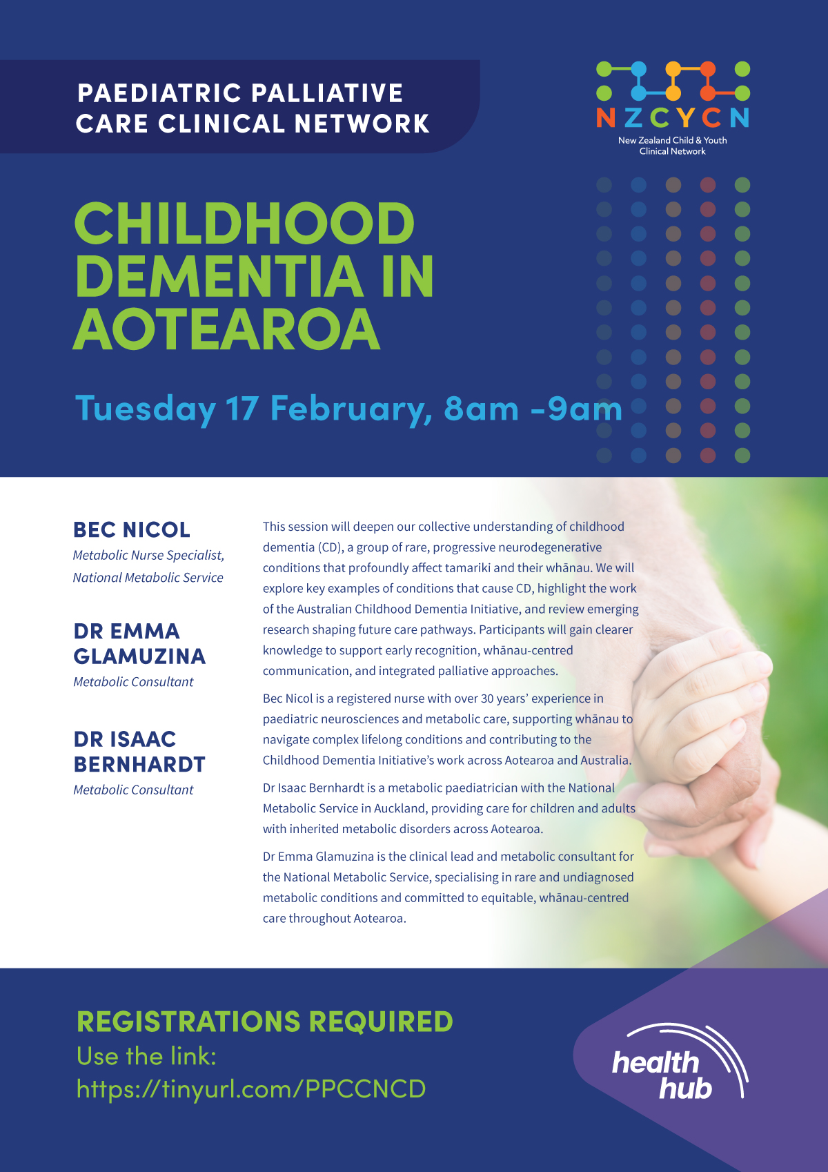Welcome to the Paediatric Palliative Care Clinical Network (PPCCN) My Health Hub webpage. The PPCCN is part of the New Zealand Child & Youth Clinical Network (NZCYCN)